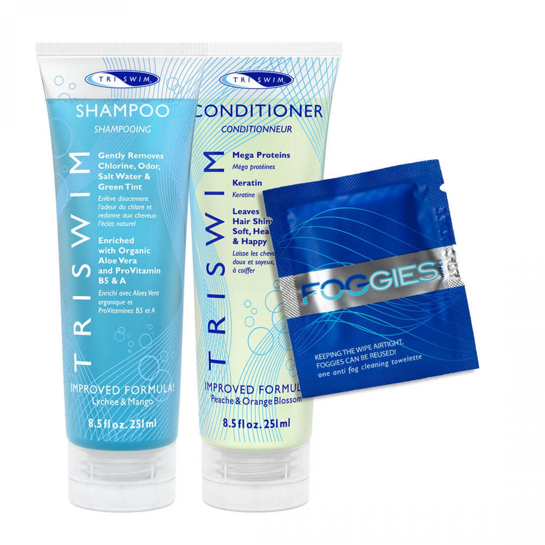 Ingredientele Triswim neutralizează și îndepărtează clorul, bromul, apa sărată și orice miros de pe piele și păr. Formular Triswim conține agenți chelatori care atacă, spală și îndepărtează orice alt produs chimic. Această formulă inovatoare ajută la detoxifiere, la hidratare și la hranirea părului și a pielii cu Aloe Vera, Vitamina A, E si Provitamina B. Cu Triswim, pielea ta este hidratată, iar părul curat, sănătos, strălucitor și mătăsos!